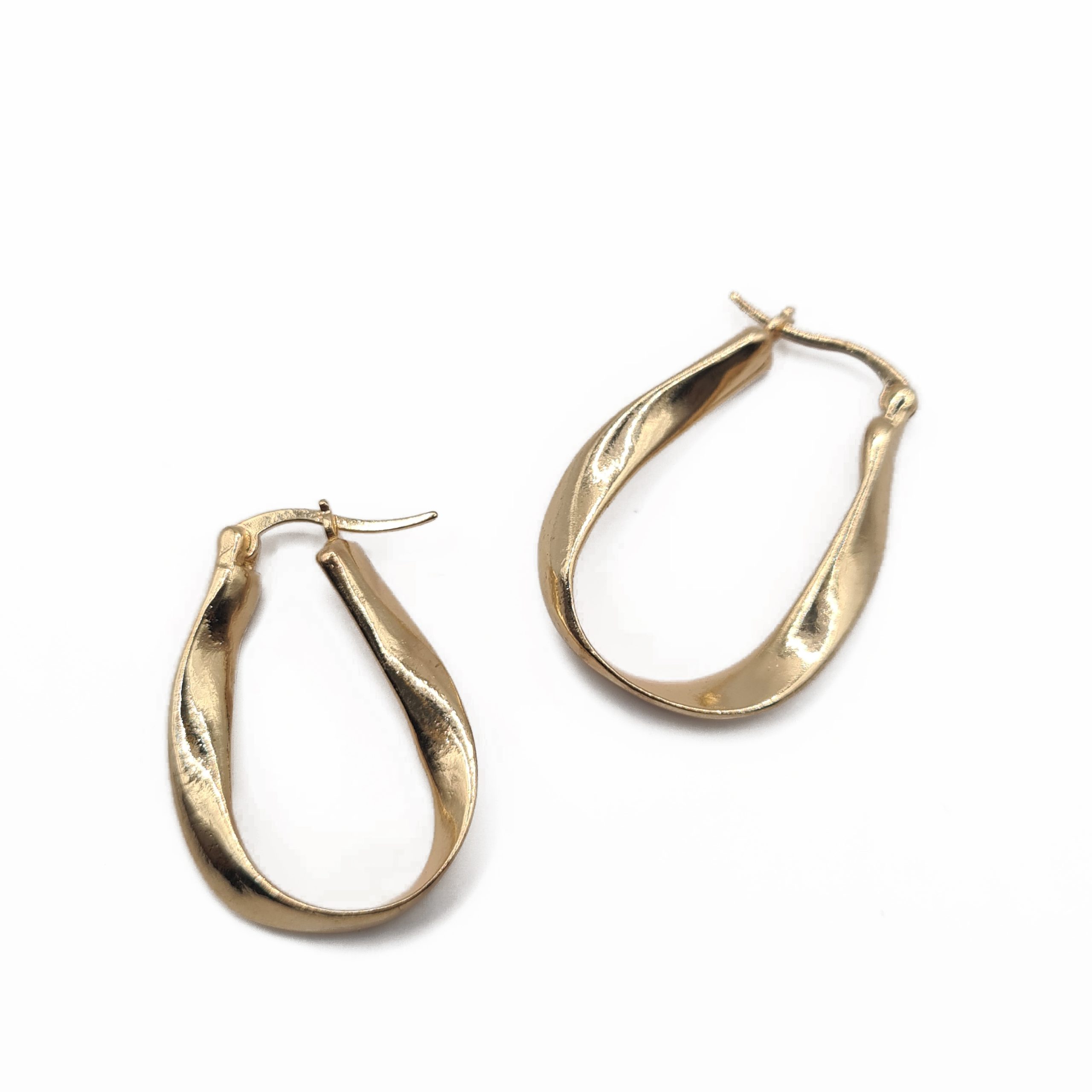 Aros diseñados para quienes valoran el detalle en el gesto. Estas argollas ovaladas presentan una torsión sutil que aporta movimiento y sofisticación, combinando forma clásica con un giro moderno.