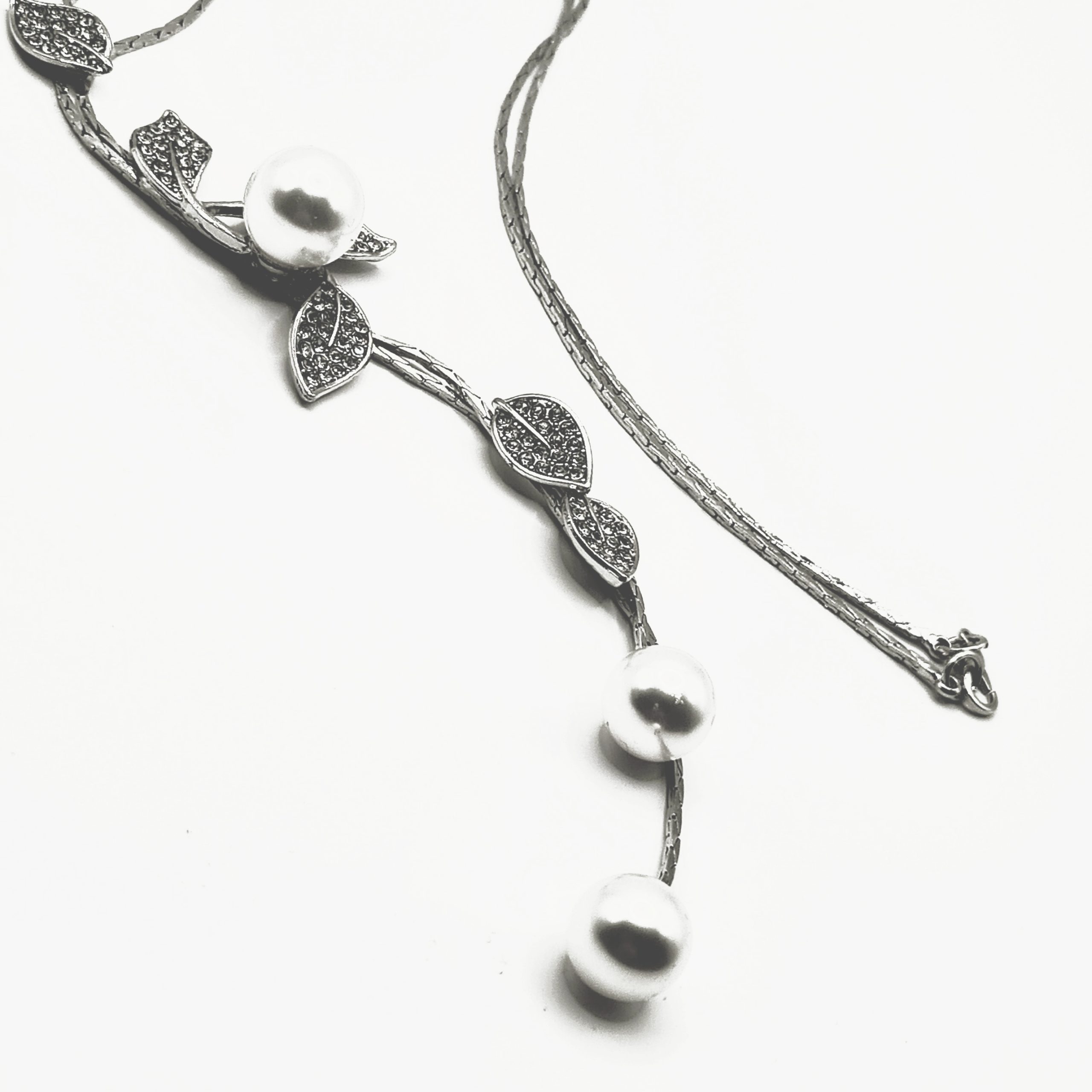 Como rama que florece en movimiento, este collar de plata con perlas, se curva con intención y detalle. Las hojas plateadas abrazan la luz, mientras las perlas cuelgan como frutos suspendidos en el tiempo. Cada elemento fue ensamblado a mano, evocando la belleza imperfecta de lo natural.